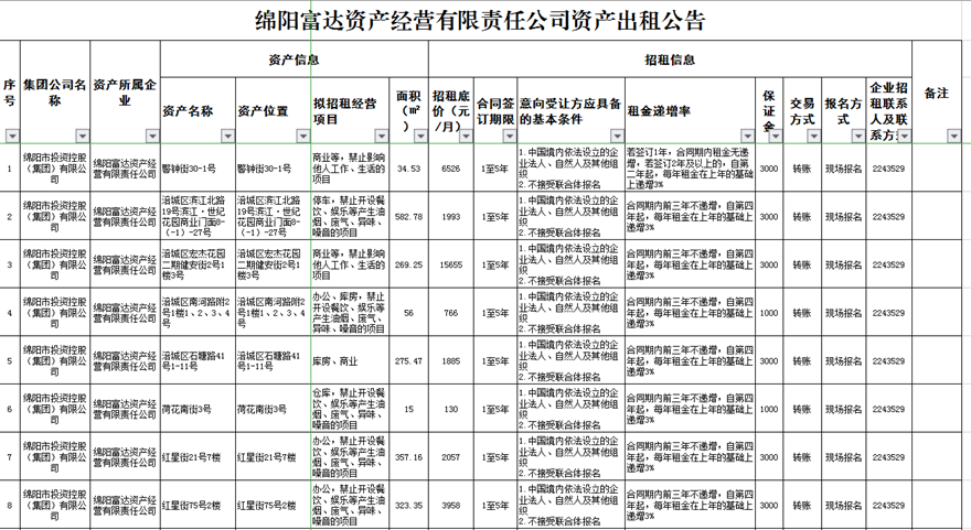 綿陽富達(dá)資產(chǎn)經(jīng)營有限責(zé)任公司資產(chǎn)出租公告