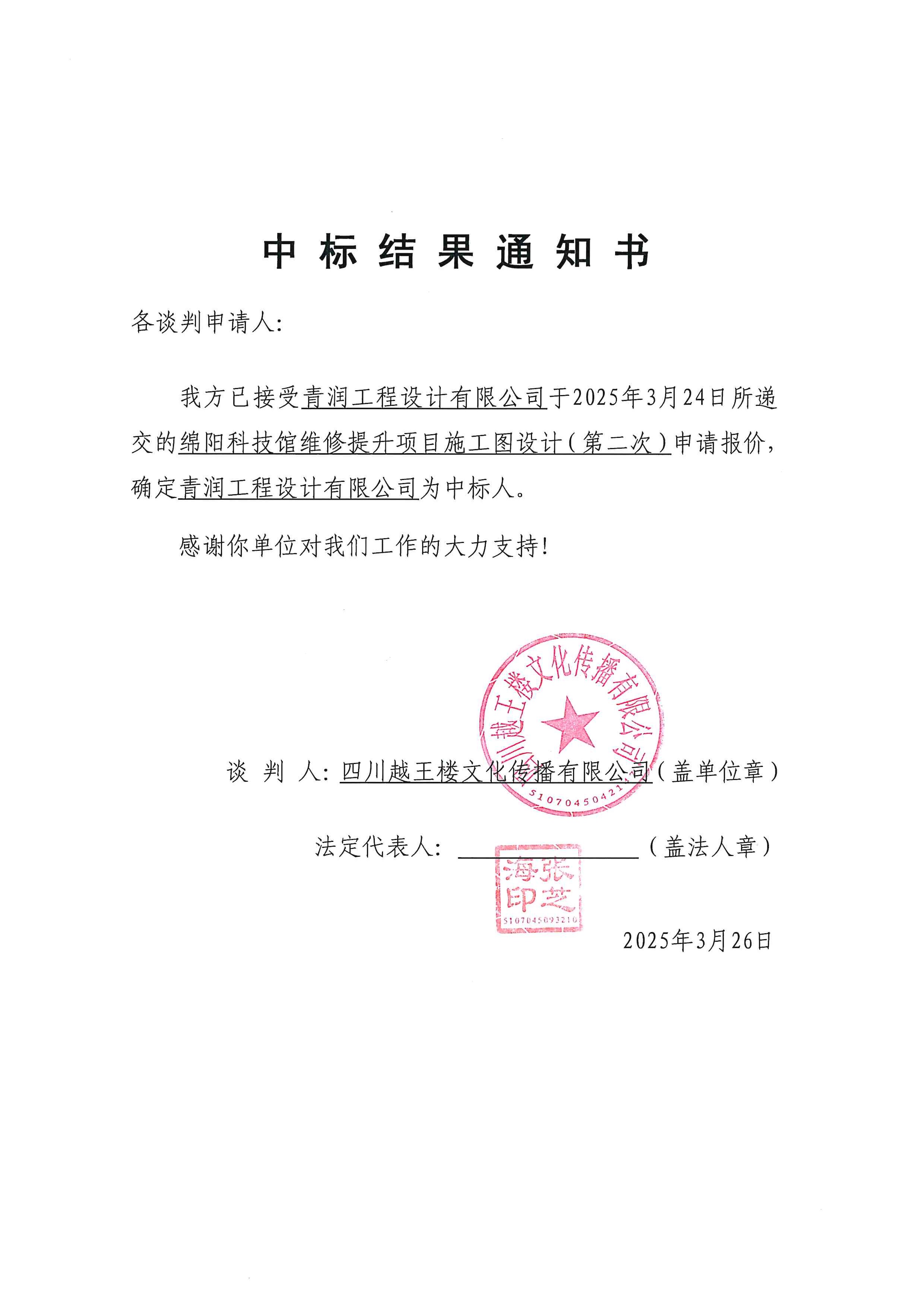 綿陽科技館維修提升項目施工圖設計(第二次)競爭性談判結果公告