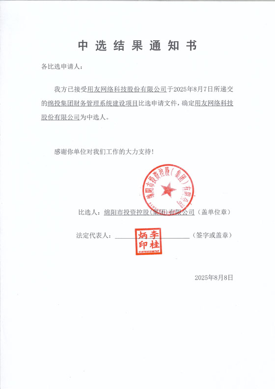 綿投集團(tuán)財(cái)務(wù)管理系統(tǒng)建設(shè)項(xiàng)目中選結(jié)果通知